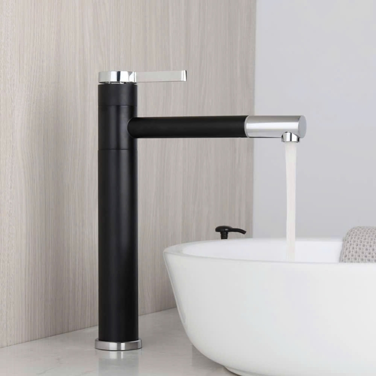 Vòi Lavabo Nóng Lạnh Cao Tròn Inox Mạ Crom Bóng (VLB90)