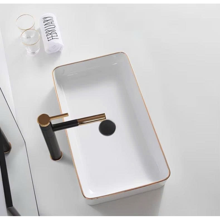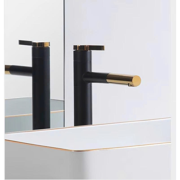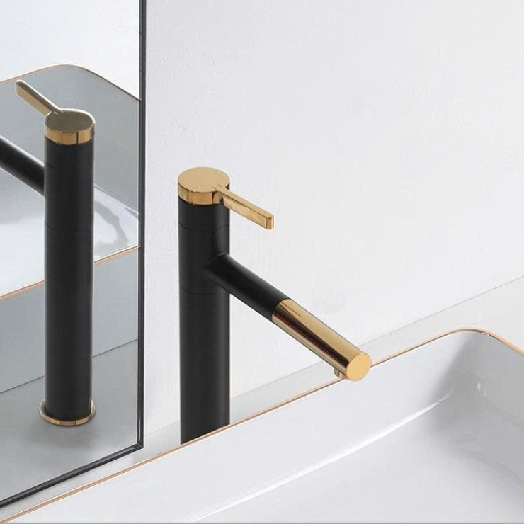Vòi Lavabo Đồng TRẮNG - VÀNG 30cm LUSENTER ( VLB85)