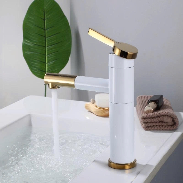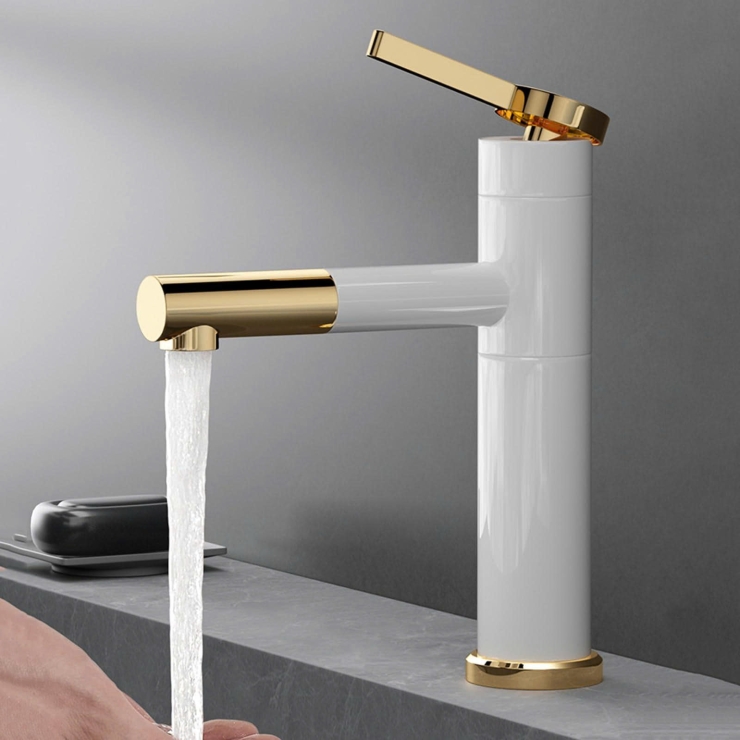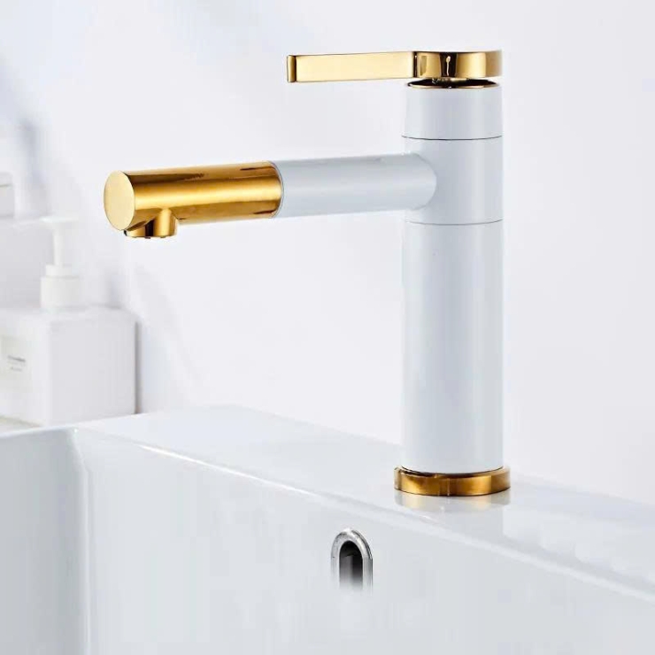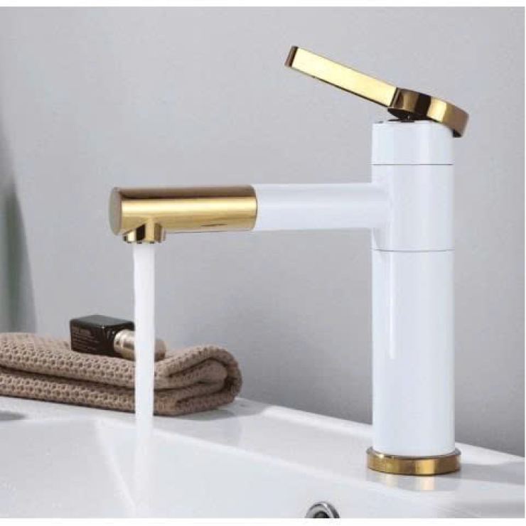 Vòi Lavabo Đồng TRẮNG - VÀNG 20cm LUSENTER ( VLB15)