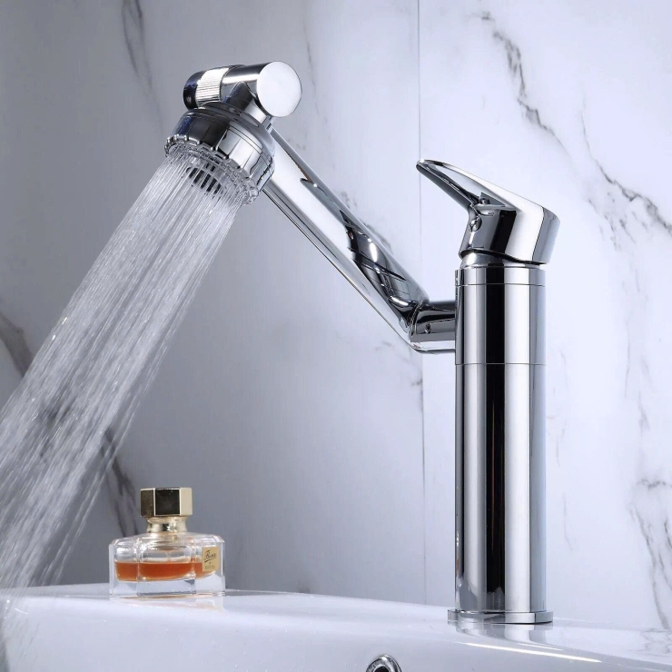 Vòi Lavabo Đồng Thau Mạ Crom Bóng xoay 360 LUSENTER - VLB10