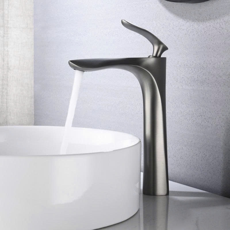 Vòi Lavabo Lá Mạ Đen Xám 30cm LUSENTER (VLB50)