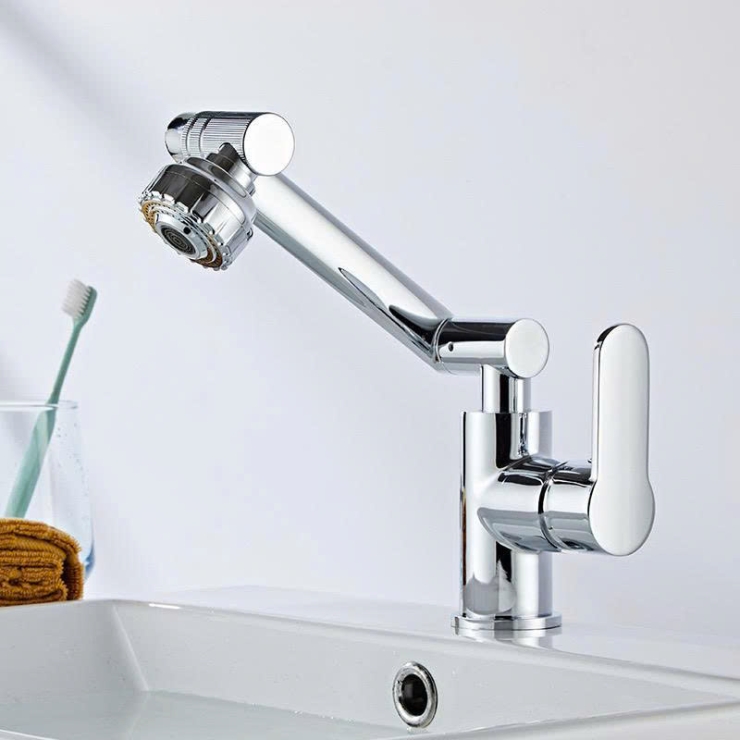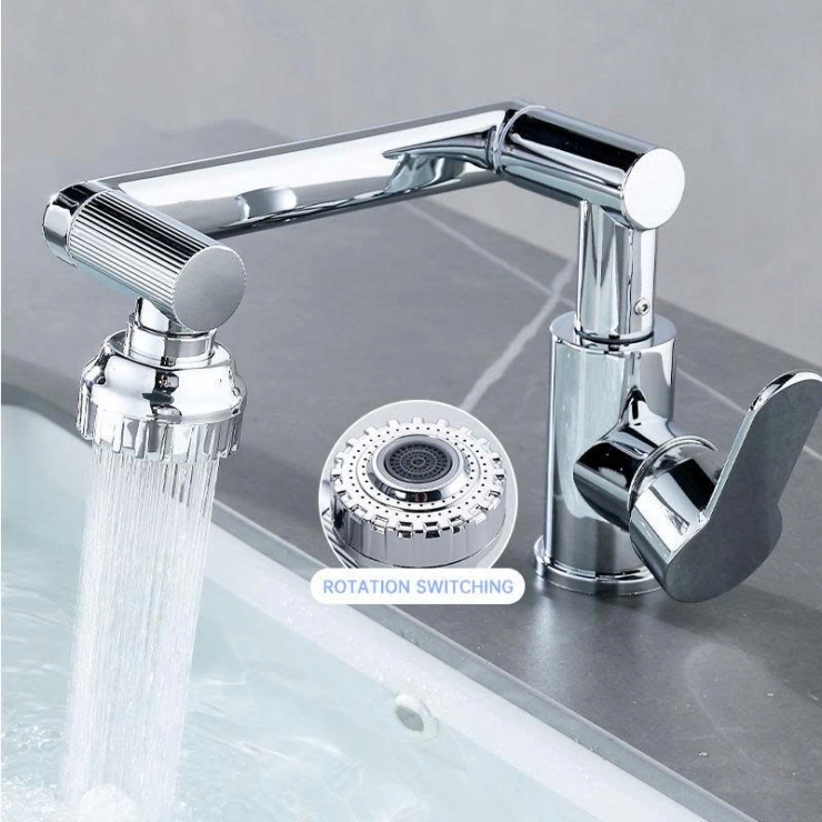- Kiểu dáng: Thân và vòi đều có thể xoay đa chiều ( xoay theo nhiều hướng ) + Các khớp nối thông minh sẽ giúp cần vòi có thể điều chỉnh được phương hướng cao – thấp để dễ gội đầu/xúc miệng/ đánh răng, bên cạnh đó nó có thể đáp ứng thêm nhiều ứng dụng khác + Chế độ xả: 2 chế độ bao gồm chế độ dòng và chế độ chùm tia.