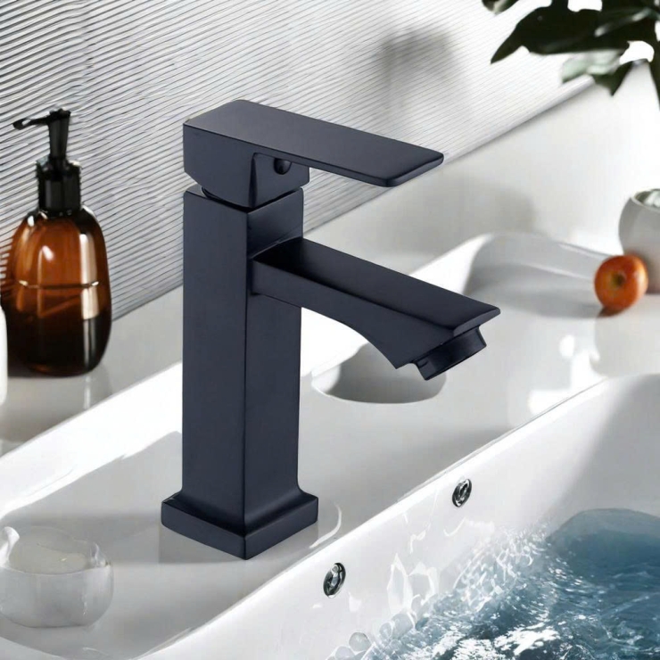 Vòi Lavabo Lạnh Vuông 2 Tấc Đen (VLB77)