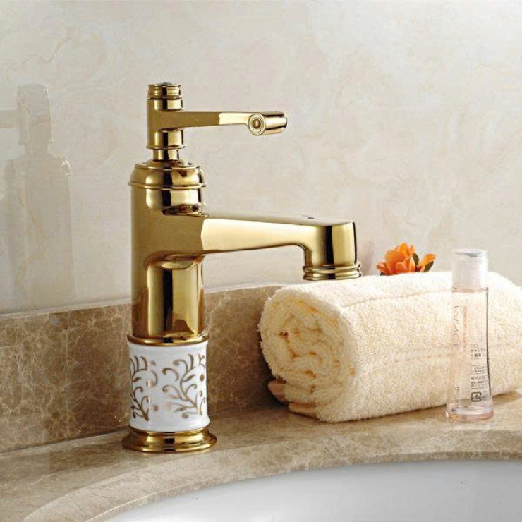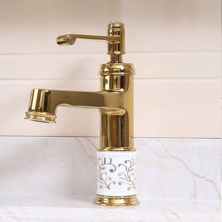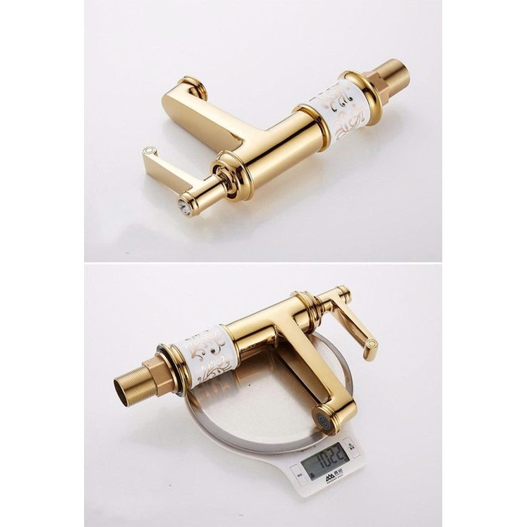 Vòi Lavabo Hoa văn Trắng Vàng 20cm LUSENTER (VLB26)