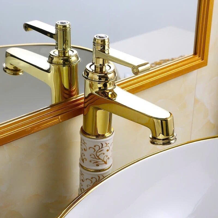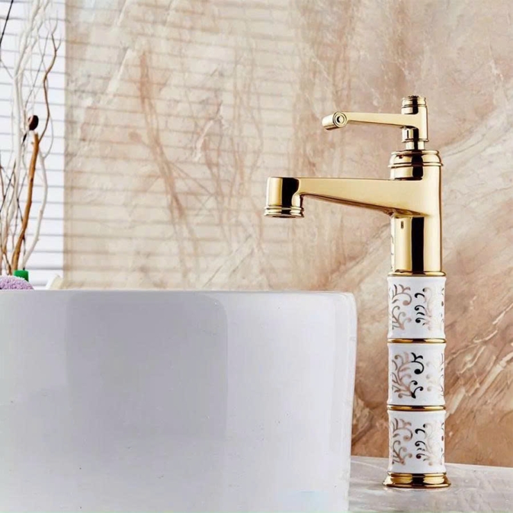 Vòi Lavabo Họa Tiết Trắng Vàng 30cm LUSENTER ( VLB27)