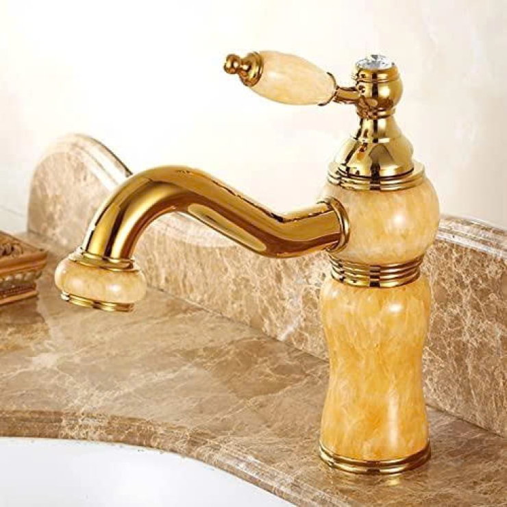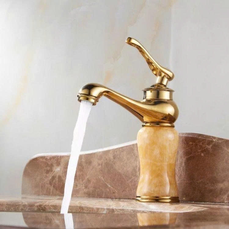 – Chất liệu được đúc từ đồng thau + inox 304 + mạ vàng cao cấp có độ bền cao, phần thân dưới được bao bọc bởi lớp đá ngọc thạch, không chứa chì đảm bảo an toàn cho nguồn nước.