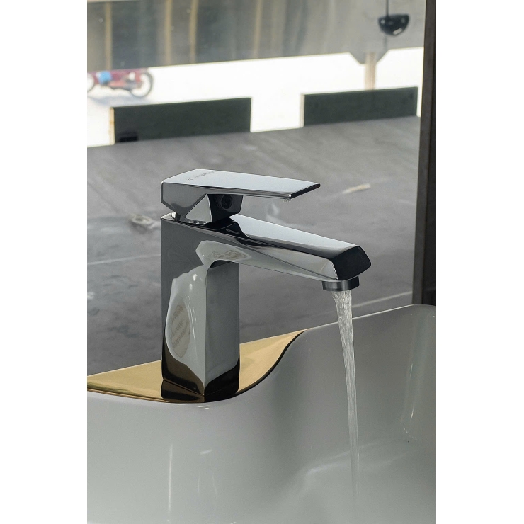 Vòi Lavabo Nóng Lạnh Thân Tròn Tay Gạt Vuông Mạ Crom (VLB91)