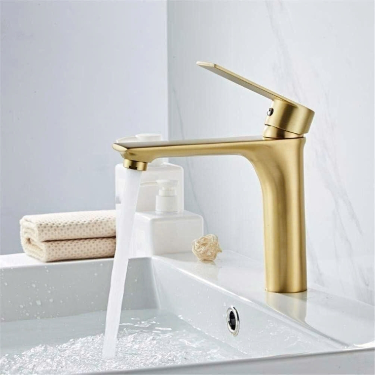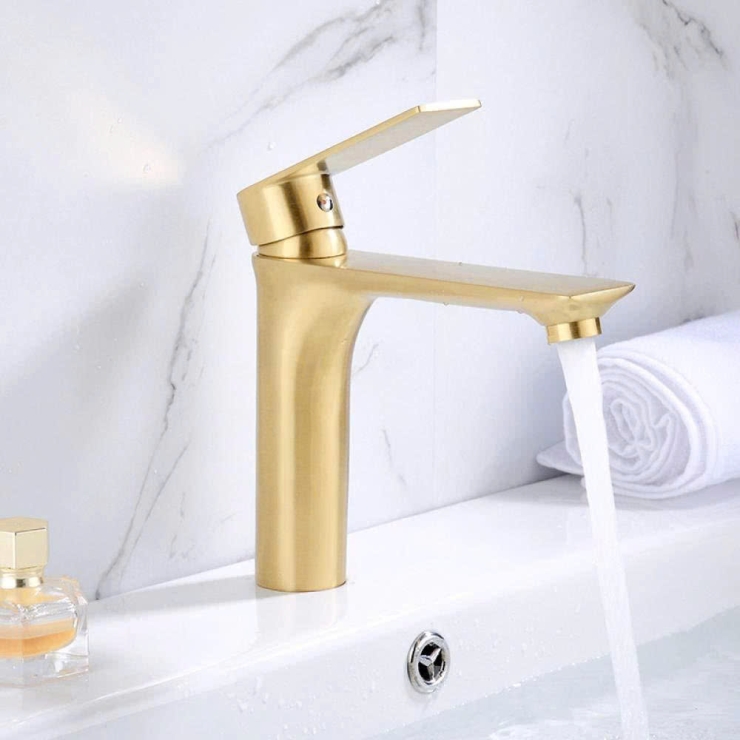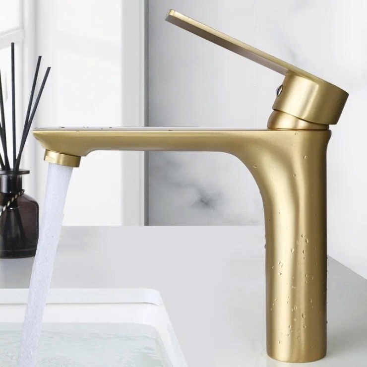 Vòi Lavabo Tròn Tay Vuông Mạ Vàng 20cm (VLB70)