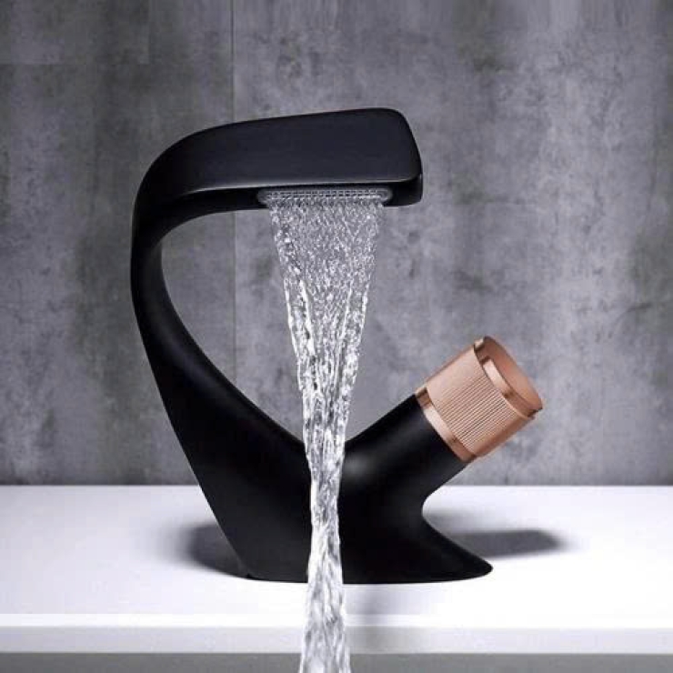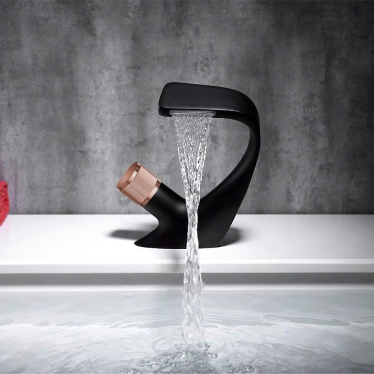 Vòi Lavabo vòm cung Đen Vàng LUSENTER (VLB25)