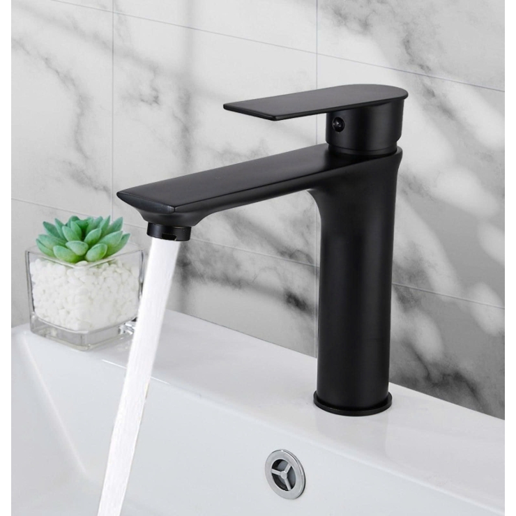 Vòi Lavabo Tròn Tay Vuông Đen 20cm (VLB68)