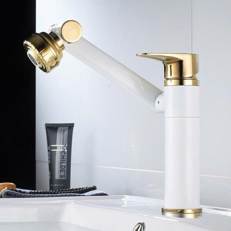 Vòi Lavabo Đồng TRẮNG - VÀNG 30cm LUSENTER ( VLB85)