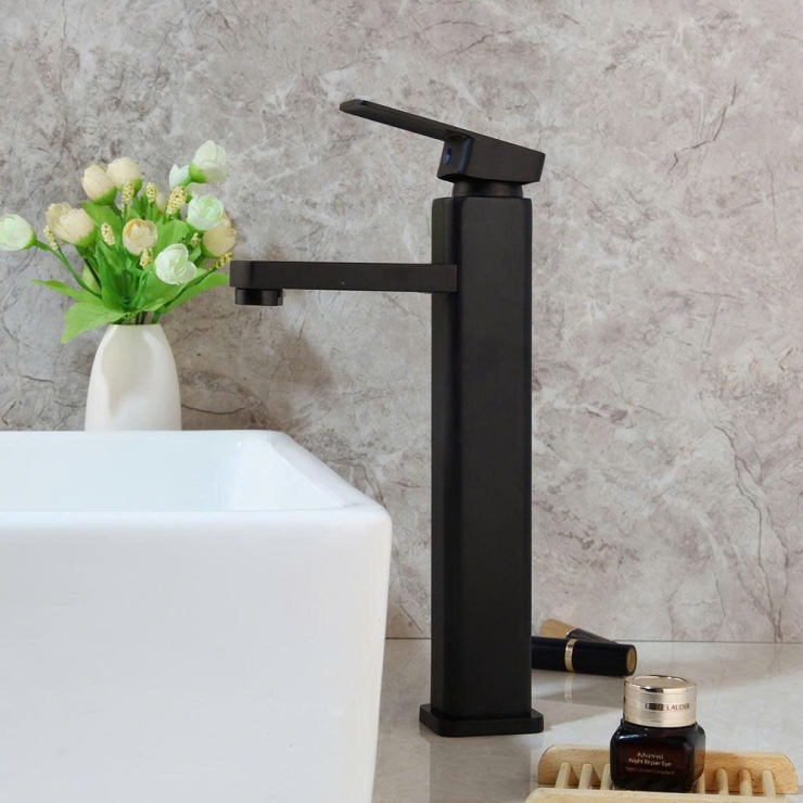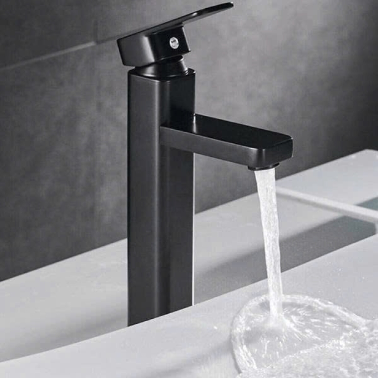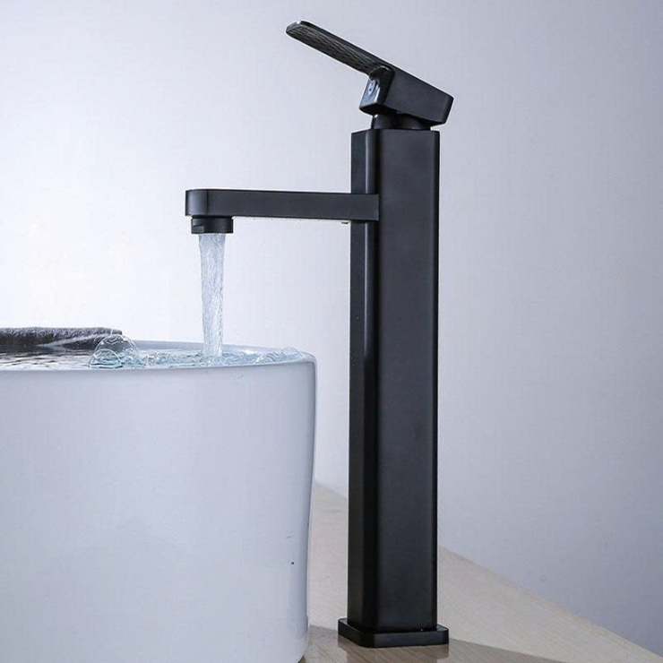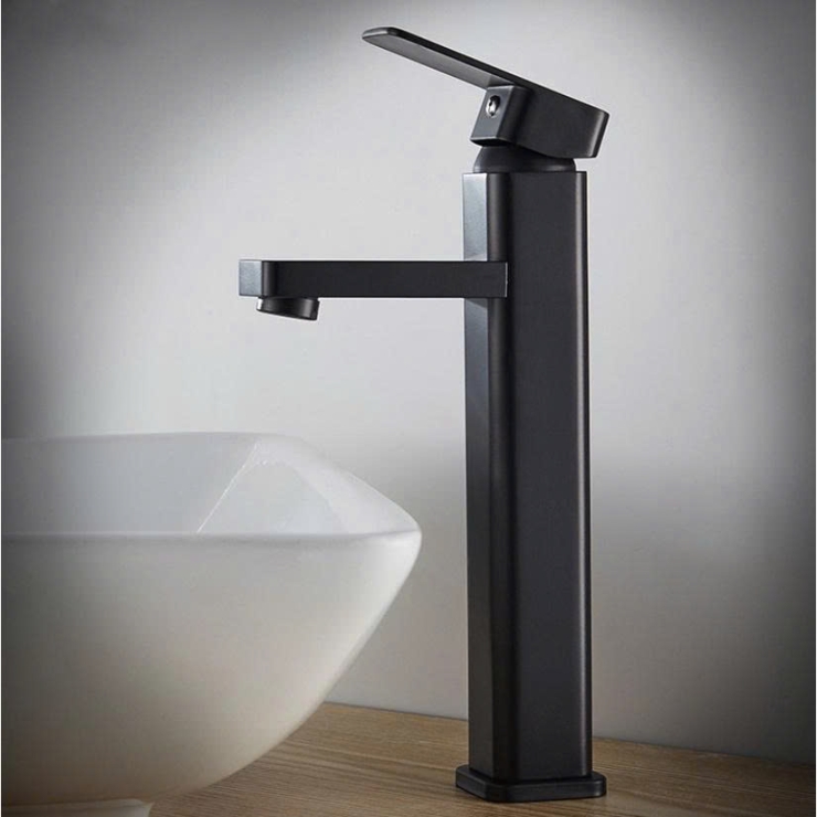 Vòi Lavabo Vuông Đen Cao 30cm (VLB65)