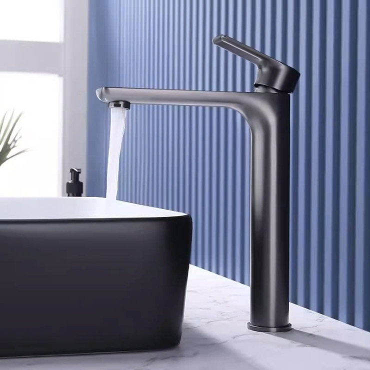 Vòi Lavabo Tròn Tay Vuông Xám 30cm (VLB73)