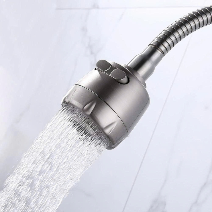 _ Tay gạt giúp đóng mở nước dễ dàng và nút điều chỉnh trên bát sen dạng công tắc nên có thể chế độ nước tuỳ ý