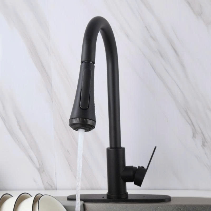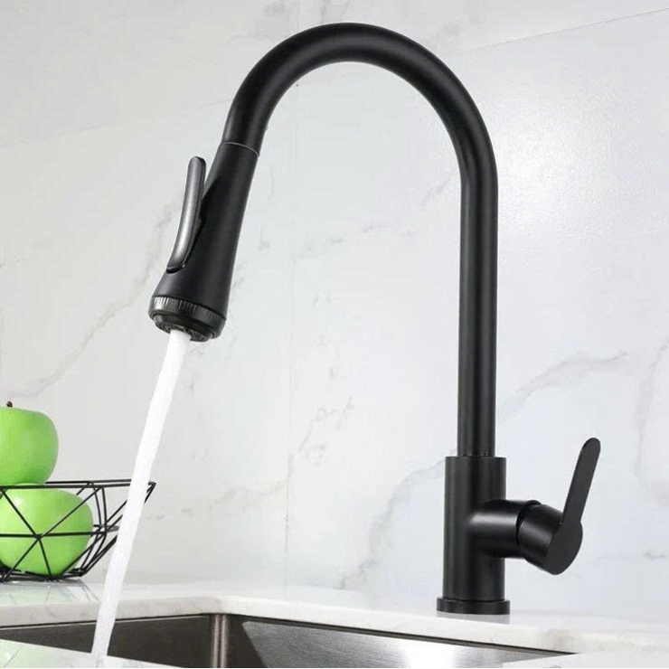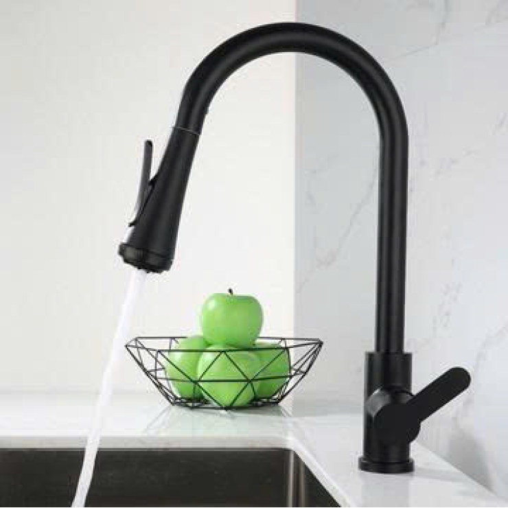 Vòi Rửa Chén Rút Nano Đen Tròn LUSENTER (VC34)