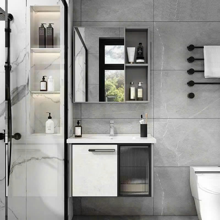 Tủ Nhôm LaVaBo Âm+Tủ Gương 60x47 ( không bao gồm vòi) LUSENTER (TLVB23)