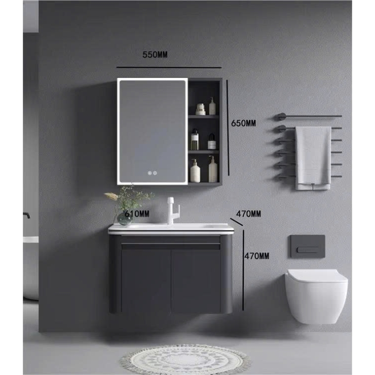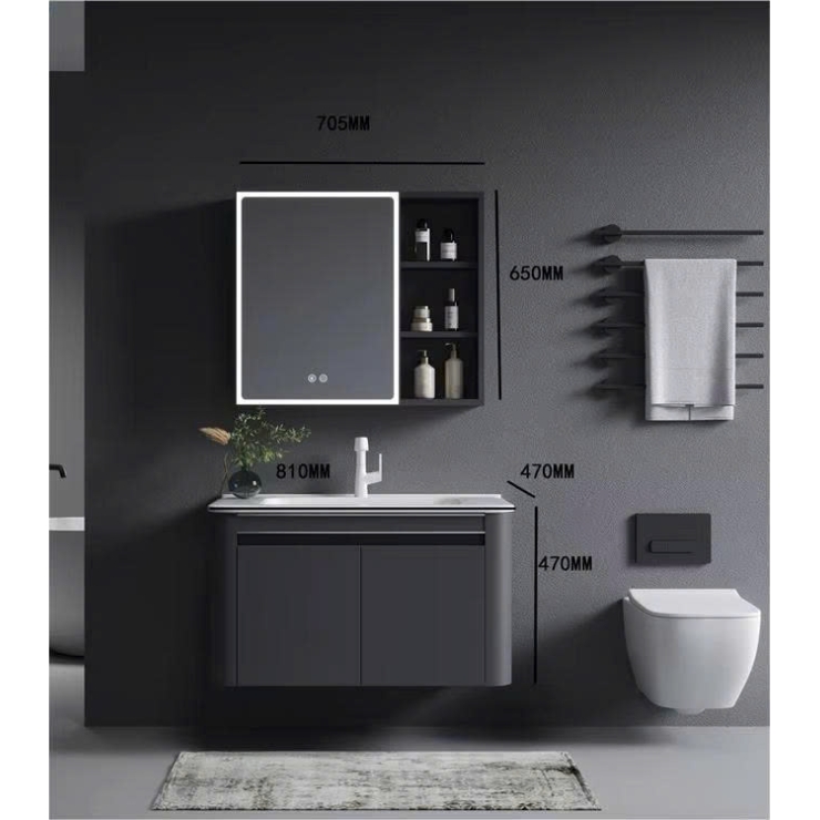 Tủ Lavabo Kiểu Full Xám + Gương Led Cảm Ứng LUSENTER (TLVB26)
