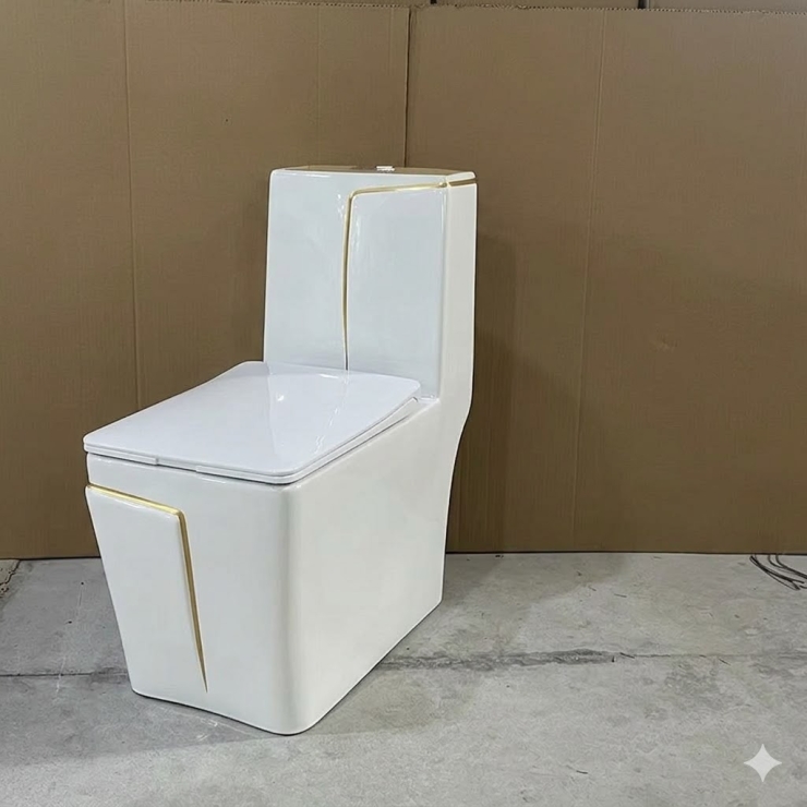 Bồn Cầu Một Khối Đen Kim Sa Viền Vàng Cao Cấp BCMK70