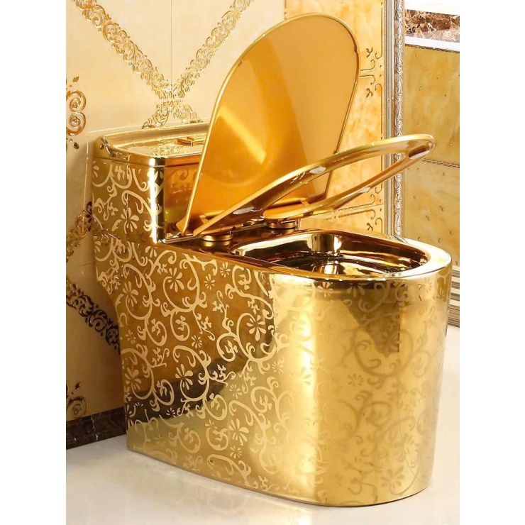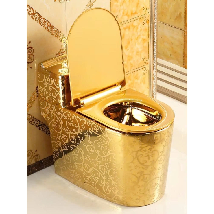 * Bồn cầu mạ vàng hoa văn là sản phẩm thiết bị vệ sinh cao cấp, được thiết kế để mang lại vẻ đẹp sang trọng, phong cách hoàng gia cho không gian phòng tắm.