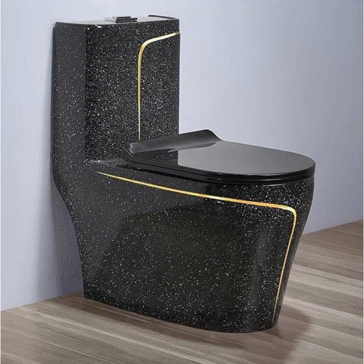 Bồn Cầu Một Khối Thân Lùn Đen Viền Vàng BCMK64