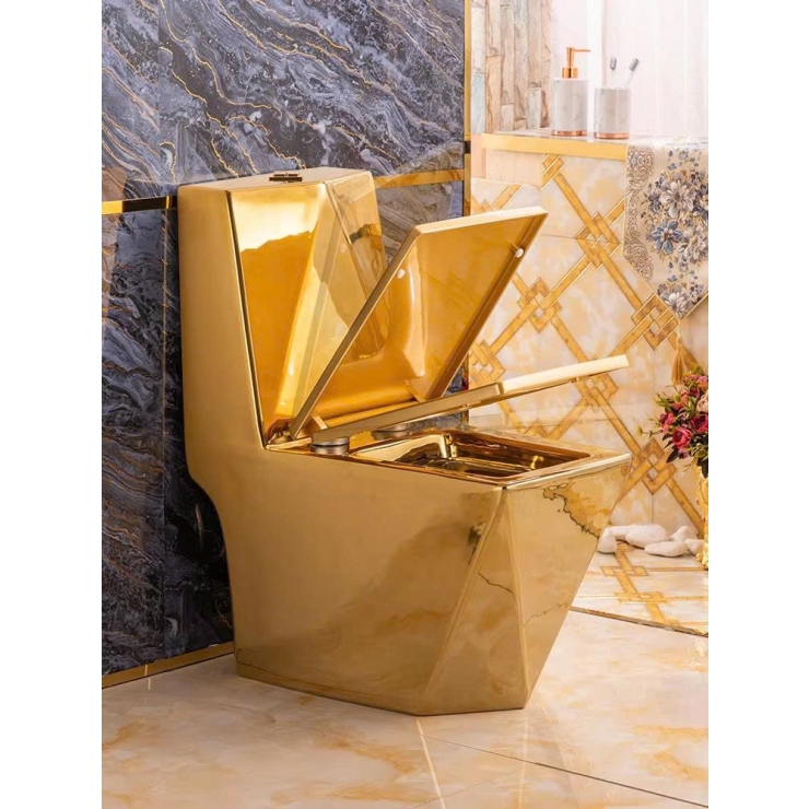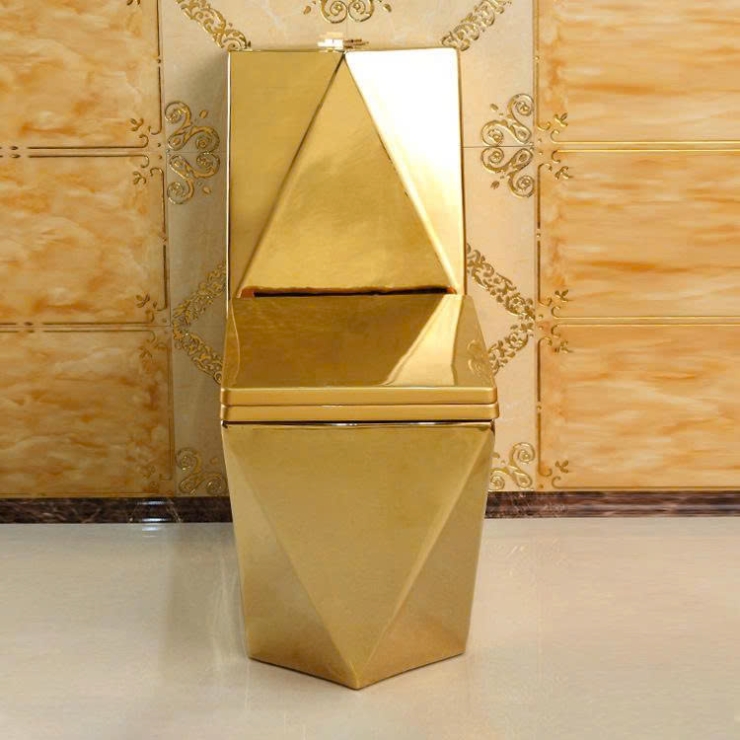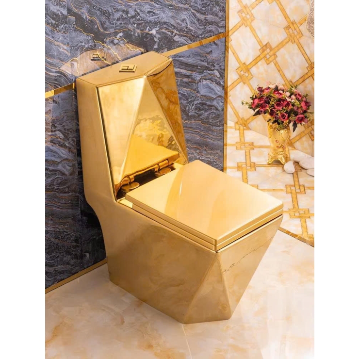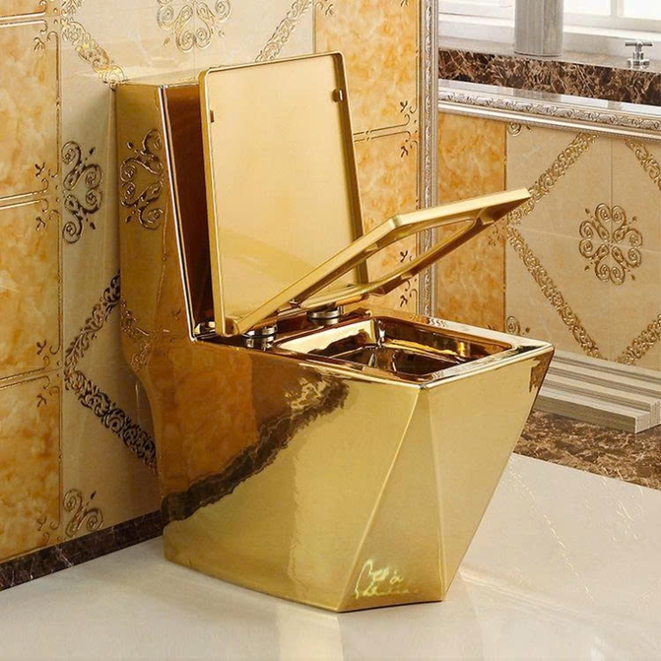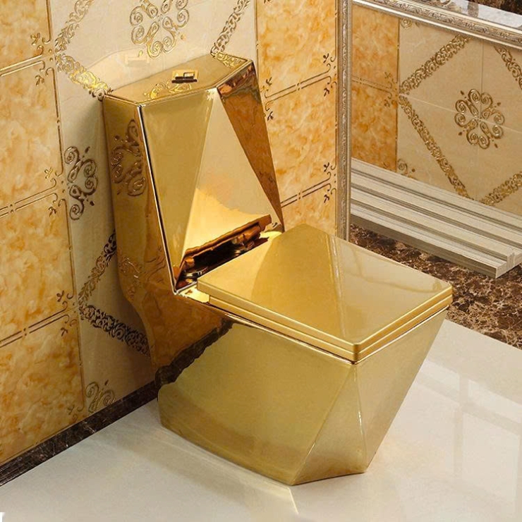 Bồn Cầu Một Khối Dáng Lùn Vàng Đồng Viền Hoa Văn