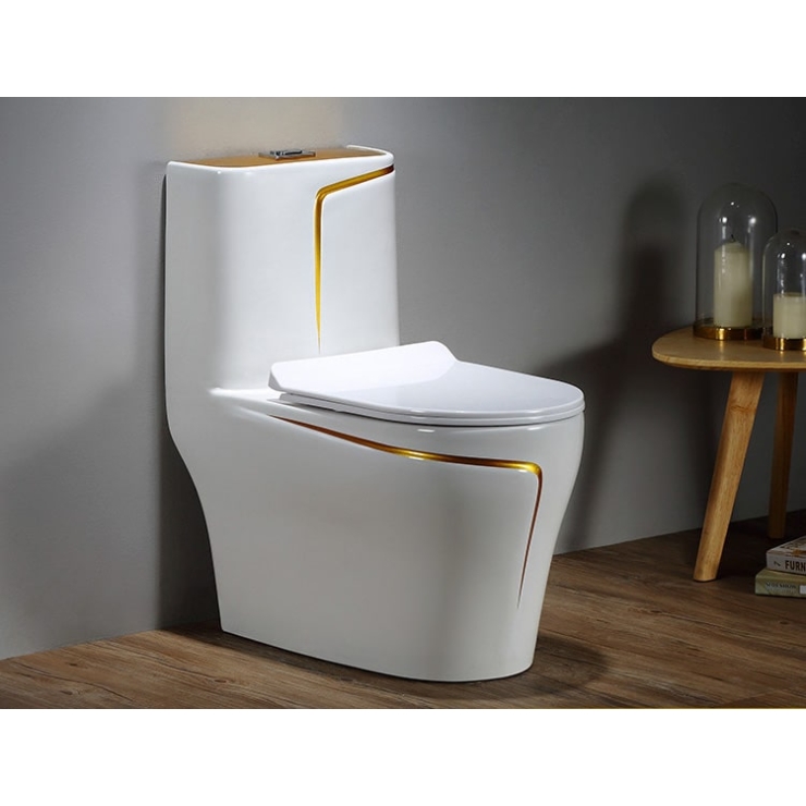 Bồn Cầu Một Khối Trắng Sọc Vàng LUSENTER (BCMK13)