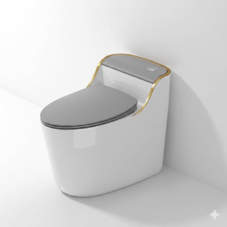 Bồn Cầu Một Khối Trắng Viền Vàng Năp Xám LUSENTER (BCMK33)