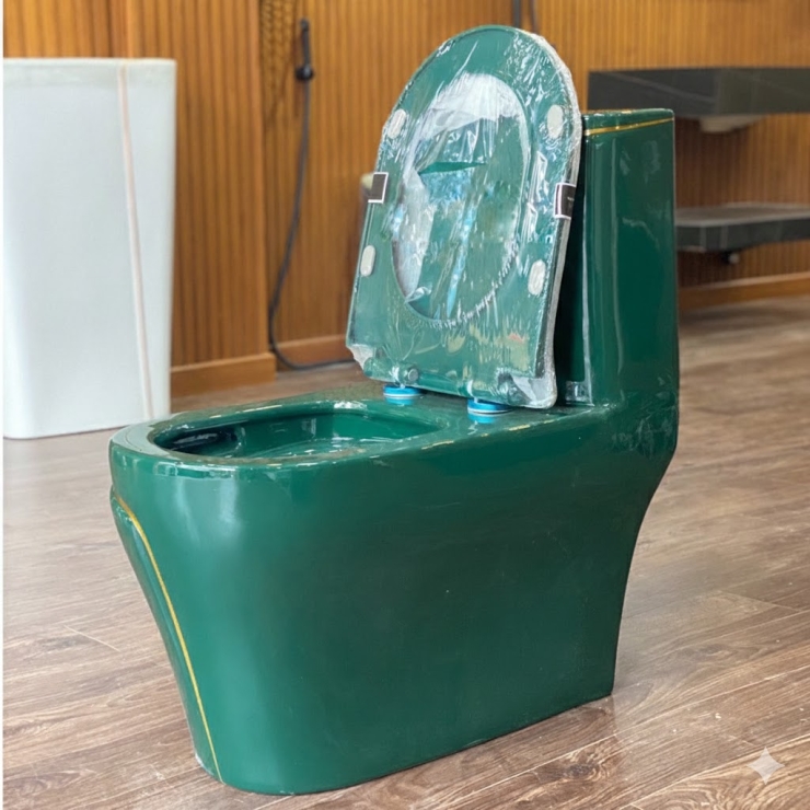 Bồn Cầu 1 Khối Xanh Rêu Sọc Vàng LUSENTER( BCMK27)