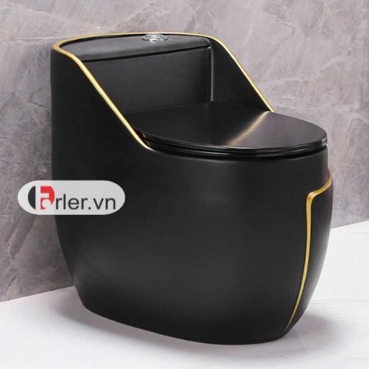 Bồn Cầu Trứng Đen Sọc Vàng Tròn Vuông FORLER (BCT25)