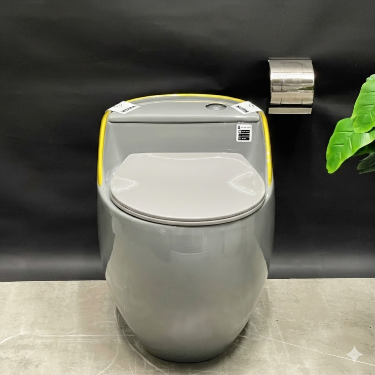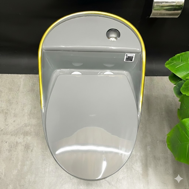 Bồn Cầu Trứng Xám Viền Vàng LUSENTER (BCT13)