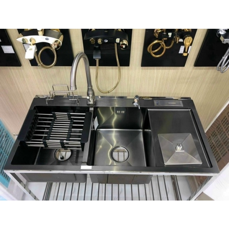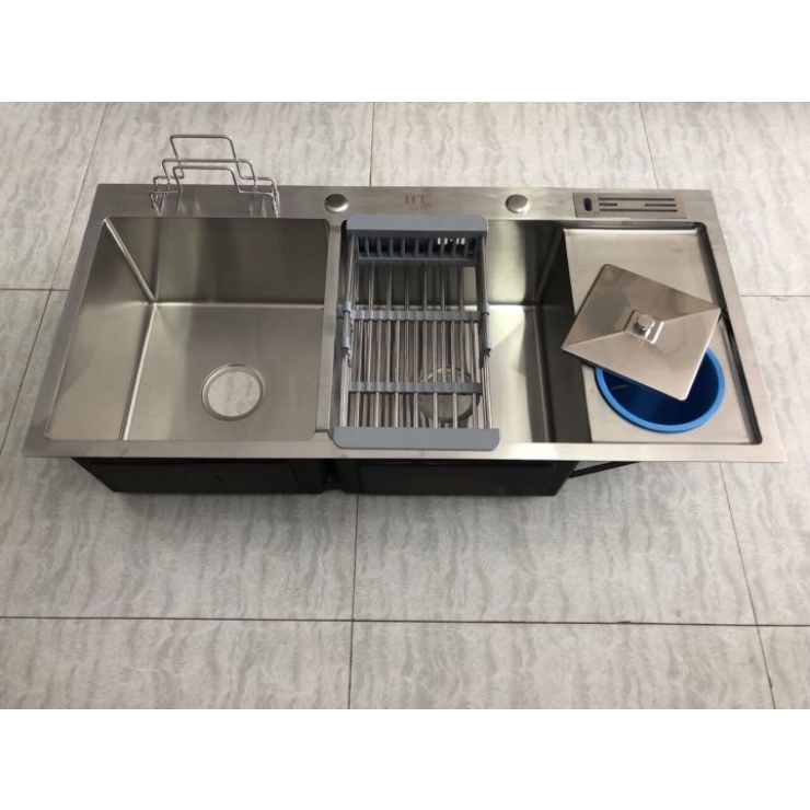 Bồn Rửa Chén Inox 2 Hộc Dao, Ly, Rác KT 100x48x23cm (BRC44)