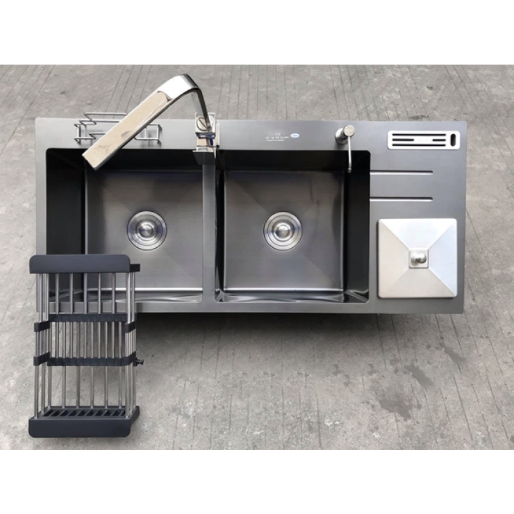 Chậu Rửa Chén 2 Hộc - Xám Đen Nhám - 82x45x23 LUSENTER (BRC04)