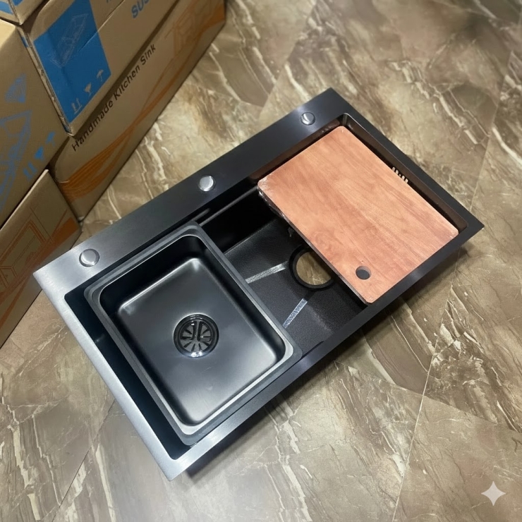 Chậu Rửa Chén 2 Hộc - Xám Đen Nhám - 82x45x23 LUSENTER (BRC04)