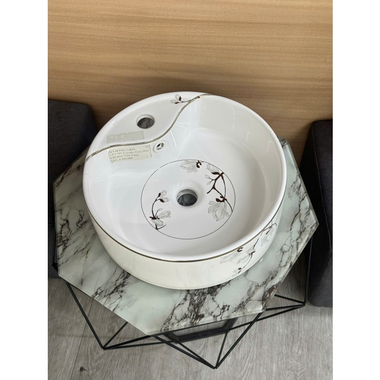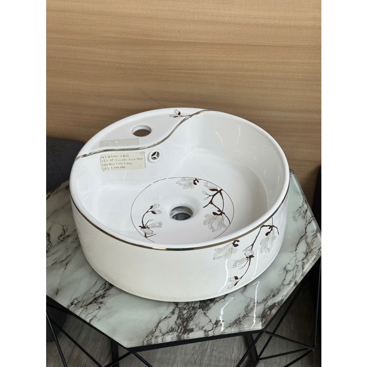 Lavabo Tròn Họa Tiết Hoa Viền Vàng LUSENTER (LB21)