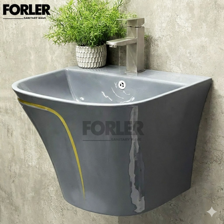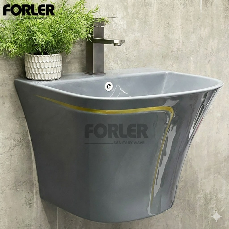 Lavabo  Treo Liền Khối Xám Sọc Vàng LUSENTER (LBTT09)