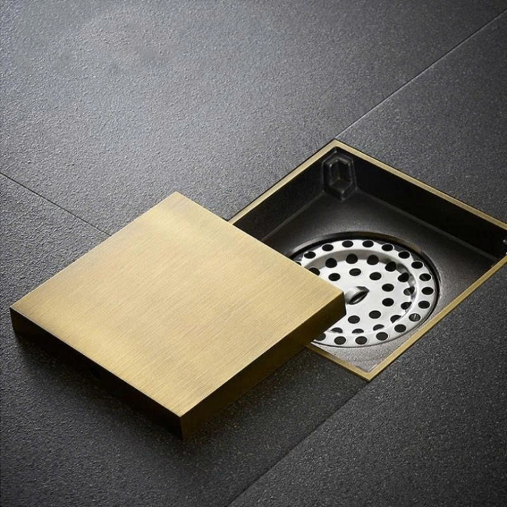 Phễu Sàn Vuông 10x10 Vàng Mờ LUSENTER (PS13)
