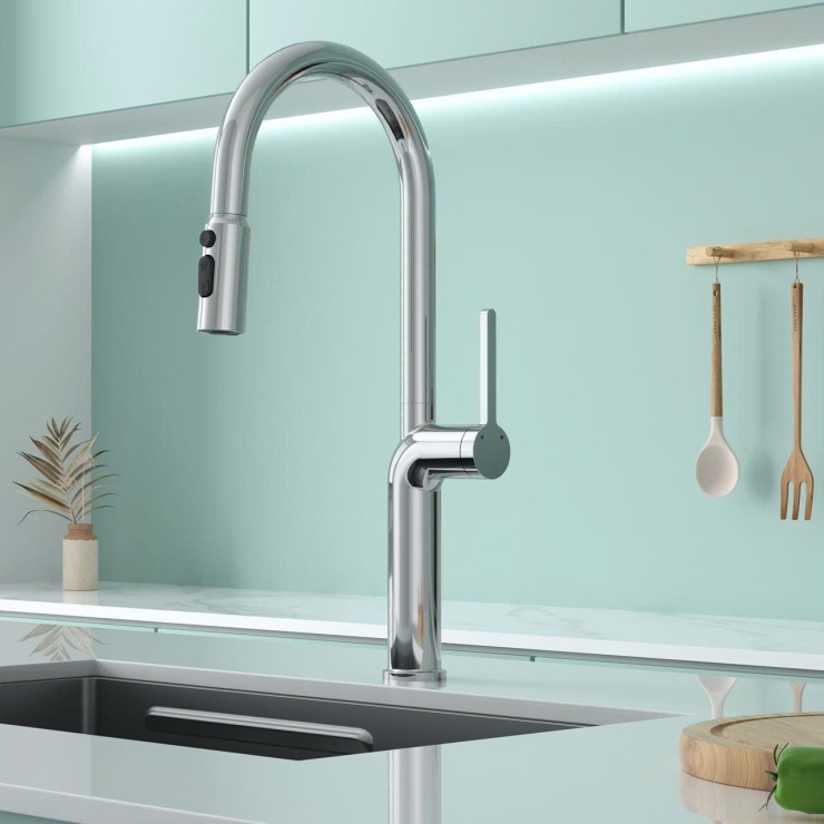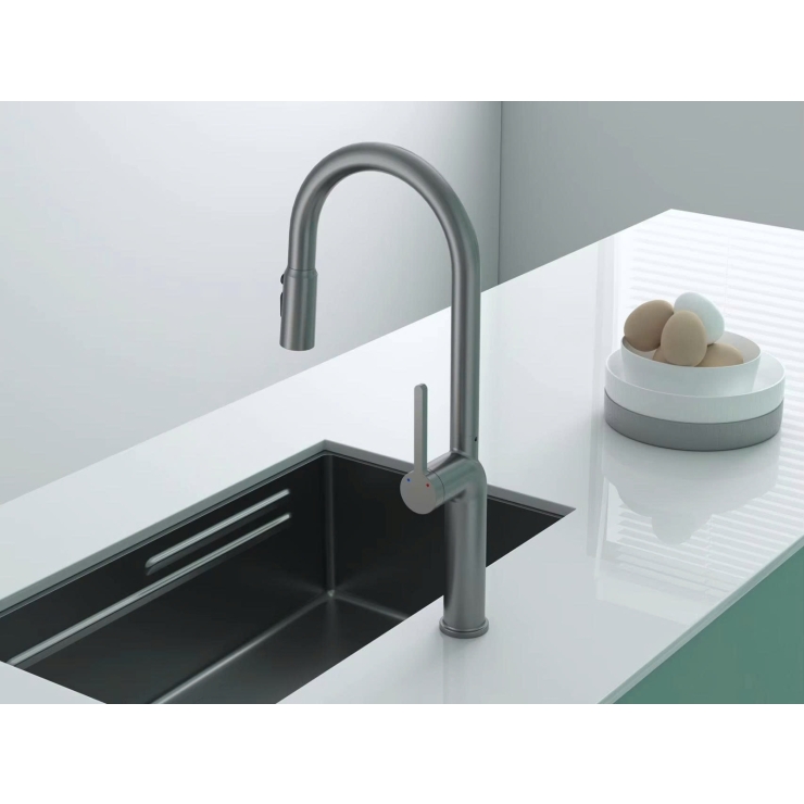 - Thiết kế đặc biệt vừa có thể sử dụng như những vòi rửa bát thông thường vừa có thể kéo dài như vòi sen cho công việc rửa chén bát, rau củ & lấy nước để đun nấu linh hoạt hơn.